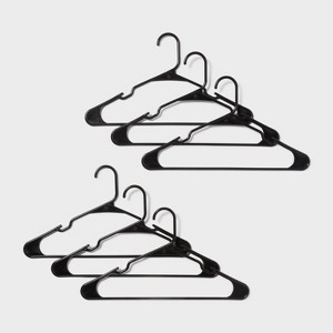 You'll surely appreciate the organization these 100-Pack Plastic Hangers from Brightroom™ bring to your closet space. Featuring a classic design, these cloth hangers have notched shoulders to help prevent clothes from slipping or falling. This pack includes 100 black plastic hangers to add functional storage to your closet.