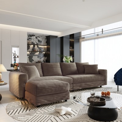 102.4" Plush Corduroy L-Shaped Sectional Sofa, 1 Ottoman, Deep Seat