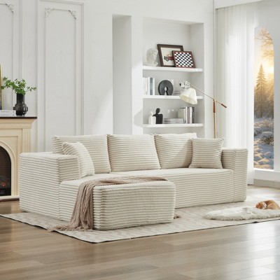 102" Oversized Modular Sectional Sofa Bed with Double Lounge Chaise, Plush Corduroy Sofa Bed, No Assembly Needed, Deep Seat Comfort
