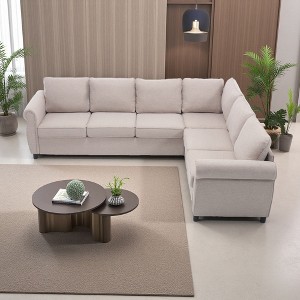 - Sofa Material: Upholstered in durable polyester fabric, the sofa includes seven thick, detachable cushions filled with high-density sponge for ultimate relaxation and ergonomic support.