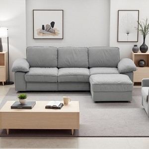 - Modern L-Shaped Sectional Sofa with Storage ¨C Upholstered in soft fabric with a contemporary design, this sectional sofa combines style, comfort, and hidden storage to keep your living room neat and organized.