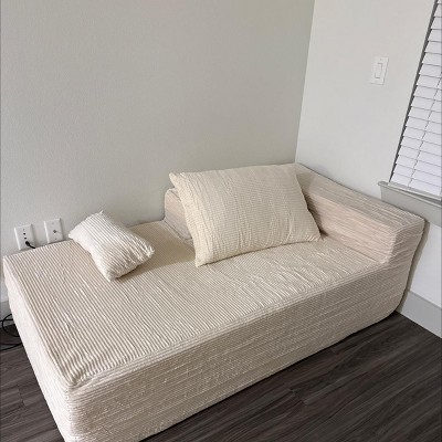 A spacious L-shaped sofa upholstered in premium, ribbed corduroy. Built from four identical, lightweight modules (2 seats + 2 seats + corner + ottoman) that lock together in seconds, letting you flip from left-hand to right-hand chaise, separate into two loveseats, or create a central island for movie night.Note: This product is delivered by two packages.