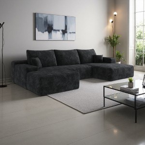 - Modular Sectional Design: Featuring sleek lines and a modern silhouette, this modular sectional is wrapped in high-quality plush corduroy fabric. Designed to maximize space against walls and corners, it brings timeless elegance to living rooms, apartments, or bedrooms.