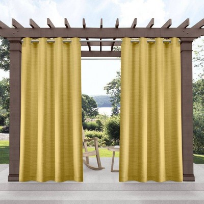 108"x84" Ironwork Sateen Woven Room Darkening Blackout Grommet Top Curtain Panel Patio Yellow - Exclusive Home: Patio Door Curtains, Polyester