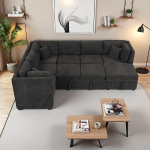 - Ultimate Comfort: This U-shaped sectional sofa is upholstered in high-quality chenille fabric, which is soft, breathable, skin-friendly. Cushions are filled with high resilience foam and spring that gives good support for your body and creates a durable yet soft seat, ensuring the sofa bed will not sag over time. This sofa also attaches three soft back pillows for added back support or sleeping.