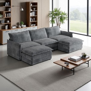 109" Corduroy Cloud Modular U-Shaped Sectional Sofa with 2 Ottomans