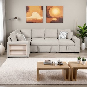 109" U-Shaped Convertible Sectional Sofa Bed with Storage & Pillows