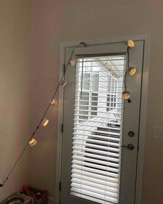 [This review was collected as part of a promotion.] This 10 light strand of LED string lights with brown printed geo shades is perfect for my fireplace to add decor. The shades are very cute and do not fall off. This was easy to remove from packaging and string. The shades are brown and white geometric patterned but appear almost mauve to me but that suits the space well. I do wish it had an on and off switch of some sort instead of just being plugged in and on. I received an incentive to write this review.