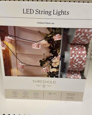 Enhance your decor with the warm glow of these 10-Count LED Brown Printed Geo Shades Indoor Outdoor Orb and Globe String Lights from Threshold™. Featuring a black plastic cord strung with ten LED bulbs within brown-and-white geometric printed shades, these clear string lights will brighten up the inside or outside of your house with an artful look. Drape them in your living or dining room or hang them along the edges of your patio or deck to create a warm and welcoming ambiance.