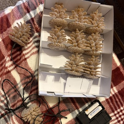 10ct LED Battery Operated Sugared Pinecone Christmas Indoor/Outdoor Novelty String Lights Warm White with Green Wire - Wondershop™