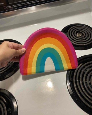 Add uniqueness to your meals with these 10ct Rainbow Shaped Snack Plates from Spritz™. These paper plates are rainbow shaped and colored that add a fun element to kids’ parties. Its disposable design makes it easy for post party cleanup. Serve up a variety of snacks, treats and desserts using these paper plates from Spritz™ to delight your guests.