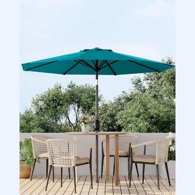 • Featuring an 8-rib steel frame and vented canopy, this umbrella remains steady in winds up to 30 MPH. The double powder-coated pole prevents rust, while the cross base enhances support (100+ lbs base recommended).