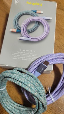 The 10ft USB-C to USB-C Braided Cable 2pk from heyday™ in Deep Sage Peri-Blue offers a reliable connection for your devices. With a length of 10 feet, these cords provide ample reach for charging and data transfer. The braided design enhances durability, reducing wear and tear. Compatible with Android, Apple iPhone, and select iPads, these cables ensure seamless connectivity.