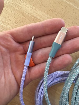 These are our families new favorite charging cords! They’re the only ten foot ones we have so they’ve been getting a ton of use! They are perfect for our charging station, to use across the bed, and they’re amazing for the car! I love the feel of the braided stitching over the cord and the colors are really pretty. We have lots of outlets that take usb c, make sure you have those because they don’t come with any. They’ve been able to charge all of our devices quickly. We’ll probably get another set so we can keep one in the car. Great product!