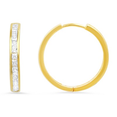 10k Solid White Gold Princess-cut CZ Basket Stud Earrings
