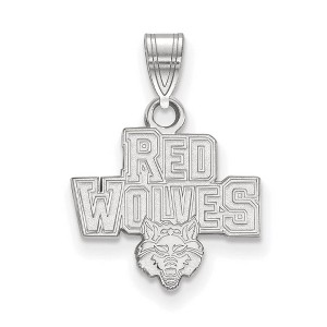 If you are a fan of Arkansas State University and the Red Wolves then you need to show your school spirit with this Arkansas State University pendant. We are a certified retailer and this authentic item is officially licensed. It is crafted from 10k White Gold and crafted in the USA. Additional features include: crafted from 10k white gold; authentic and made in the usa; perfect for every red wolves fan; officially licensed for arkansas state university.