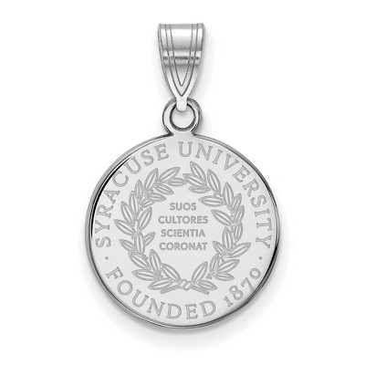 If you are a fan of Syracuse University and the Oranges then you need to show your school spirit with this Syracuse University pendant. We are a certified retailer and this authentic item is officially licensed. It is crafted from 10k White Gold and crafted in the USA. Additional features include: crafted from 10k white gold; authentic and made in the usa; perfect for every oranges fan; officially licensed for syracuse university.