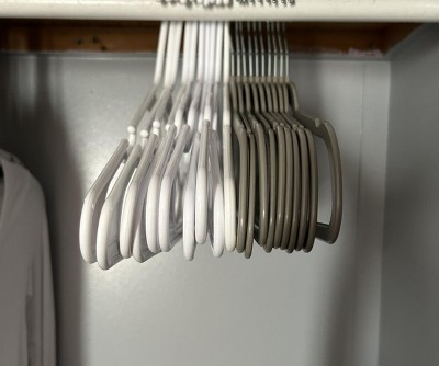 10pk Thin Plastic Hangers Gray - Brightroom™: Slim Clothes Hangers for Adults, 17.5" x 9.1" x 0.2", Household Use