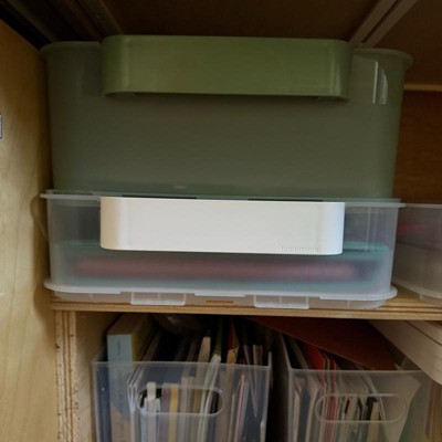 [This review was collected as part of a promotion.] This is a good sized 10 quart bin. The color is a nice, muted green; but it’s also opaque so you can see what’s inside. I will say that this bin doesn’t come with a lid or cover, so I’m assuming that you would have to purchase this separately. This bin is not very tall, so it would be good for paper, stationary supplies, or things that are fairly thin or not tall. It is nice that these are stackable, but I think I would’ve preferred it with a lid. I received an incentive to write this review.