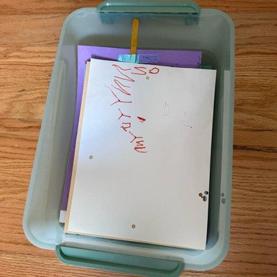 [This review was collected as part of a promotion.] This plastic storage bin is great. I love the green color. I plan on using this container for all my son’s paperwork and art from school. I love being able to have one place where it all goes. I do wish it came with a lid. There are multiple spaces and sizes. You might be able to buy a second container with a lid that snaps on. I saw a picture online but could not find it. It does come in clear as well. I received an incentive to write this review.