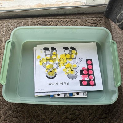 [This review was collected as part of a promotion.] Great size storage bin - was exactly what I needed for my kids’ artwork. Larger size fits letter size and construction papers with no problems. Love the stacking feature of these bins - no lid needed as they stack just fine without. Handles are a great size for latching lids when used, but they also give lots of room for labels. Color options are fine, but I couldn’t find a matching color lid to go with the bins I purchased. I received an incentive to write this review.