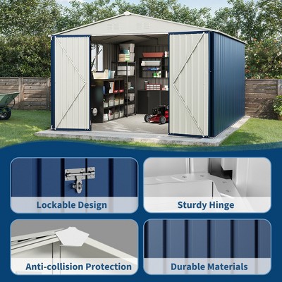 - 1.This 10x10 ft metal tool shed offers ample space to store all your tools and equipment securely, keeping your outdoor area organized and clutter-free.