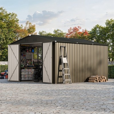 10x10 FT Metal Tool Shed, Weather-Resistant Windowless Secure Storage Shed for Outdoor Tools and Equipment Brown