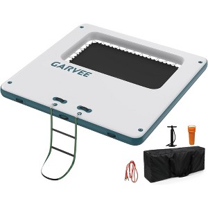 - Square 10ft*10ft inflatable floating dock features a water hammock where you can soak in the water to stay cool and enjoy the water experience. You can also lay back and sunbathe on the spacious floating dock platform