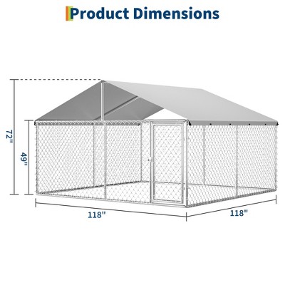 Spacious & Versatile Play Area: Measuring 10x10x6ft, this dog run provides ample space for small to medium-sized dogs to play and exercise freely. It's also ideal as a pet playpen for chickens, rabbits, ducks, and other small animals