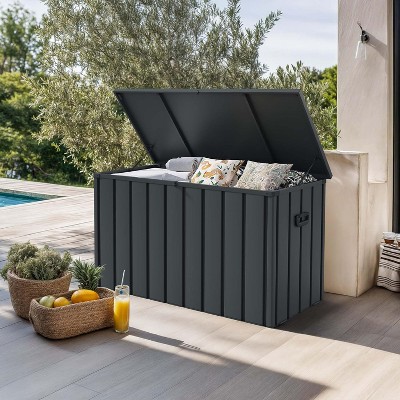 10X12 FT Outdoor Storage Shed, Galvanized Steel Storage Shed, Steel Sliding Doors, Weather Resistant, Garden Tool Shed with Lockable Door, Gray