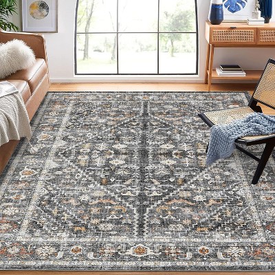 10x13 Extra-Large Soft Area Rug – Washable, Distressed Modern Farmhouse, Low Pile Non-Slip for Living Room/Bedroom (Grey)