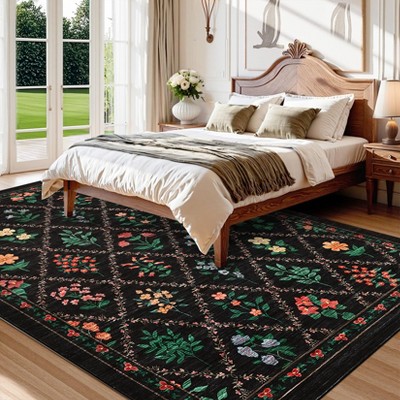 10x13 FT Modern Washable Area Rug for Living Room, Soft Floor Rug with Non Slip Backing, Low Pile Stain Resistant Indoor Carpet for Home Office,Black