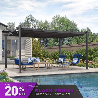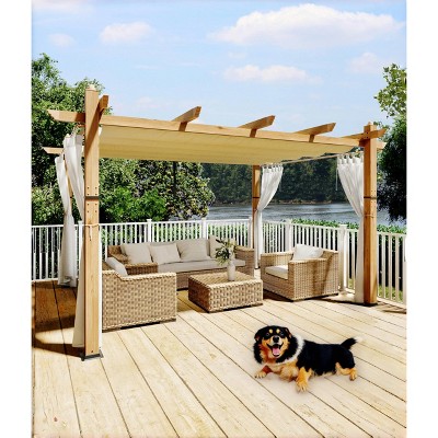 10x10 Ft Retractable Outdoor Pergola with Canopy and Side Mesh, Upgraded Wood-Grain Aluminum Pergola, Modern Pavilion for Backyard, Patio, Porch
