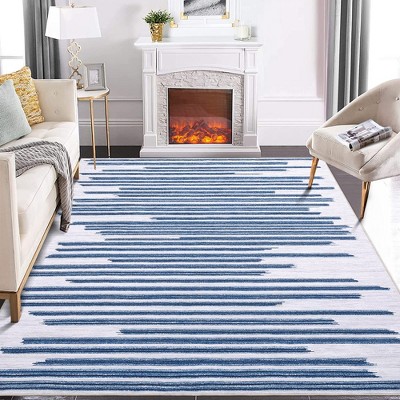 Washable Area Rug - Modern Berber Stripe Non Slip Low Pile Rug, Stain Resistant for Living Room Bedroom Office