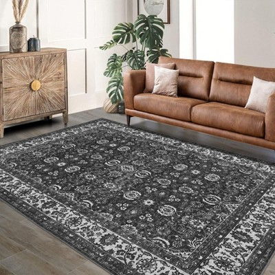 10x13 Washable Modern Abstract Rug Oversized Non Slip Plush Low Pile Neutral Carpet for Living Room Bedroom Open Floor, Black/White