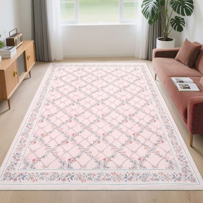 10x13 Washable Runner Rug - Modern Floral Vine Non-Slip Kitchen Entryway Carpet Stain Resistant Low Pile Floor Cover for Bathroom Pink Orange