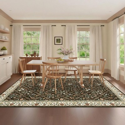 10x13FT Modern Washable Area Rug for Living Room, Bordered Foldable Area Rug with Non Slip Backing, Stain Resistant Low Pile Carpet for Home, Brown