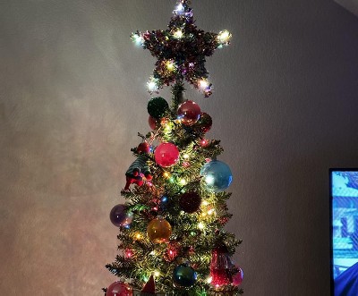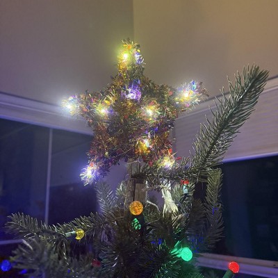 11" Lit-Led Multi Tinsel Star Twinkle Warm White Lights Christmas Tree Topper - Wondershop™