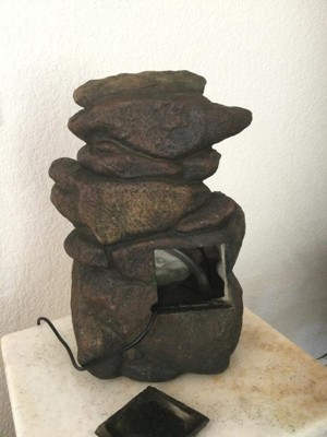 [This review was collected as part of a promotion.] The Alpine Corporation 11" Tall Indoor 3-Tier Tabletop Stone Water Fountain with LED Lights is so nice to listen to and look at. It is very easy to set up and get running. I have it on my porch and I have had so many compliments on it.
