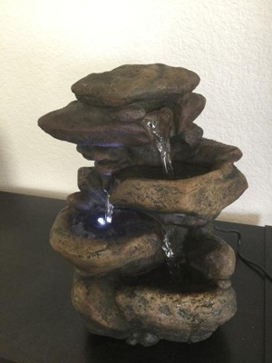 [This review was collected as part of a promotion.] I got this 3 tier tabletop waterfall complimentary in exchange for my honest review. This fountain is so cute! I put it in the corner of my kitchen on the countertop so that I can hear it as we eat our meals. It's so calming, I really love it. It has led lights in it as well so if you want to put it outside it will add a little brightness to those nighttime meals out doors. It is very fragile though, so be careful when taking it out of the box. It is also very easy to setup! I would highly recommend.