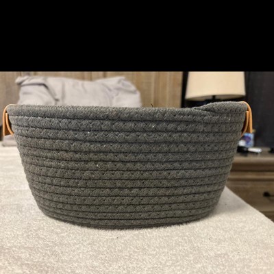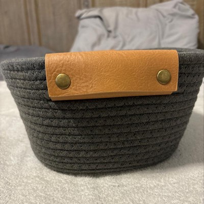 With its balance of function and style, the Small Coiled Rope Basket from Brightroom™ will make a great storage solution in your home. This decorative basket is made up of coils of charcoal-hued rope accented with tan leather handles for a simple yet chic look you'll love to have on display. At 5 inches by 10 inches by 11 inches, the basket is a perfect size for holding smaller items like mail, your keys and wallet on an entryway table, hair accessories or cosmetics on your vanity, or pill bottles and bandages in your medicine cabinet. Wherever you choose to place it, you'll appreciate how easily the neutral charcoal and tan color combo coordinates with your current color palette.