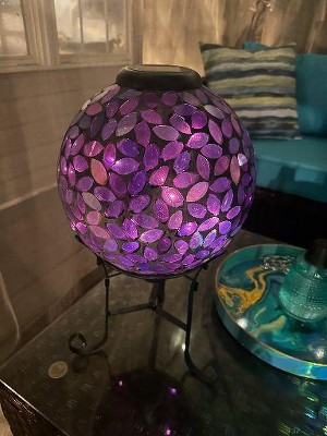 [This review was collected as part of a promotion.] The solar mosaic gazing globe comes with a stand and is so easy to set up. It is very colorful but I am disappointed it isn’t very colorful at night. It needs more solar lights to illuminate it as you can’t see the mosaic tiles at night.