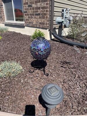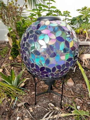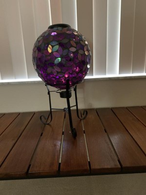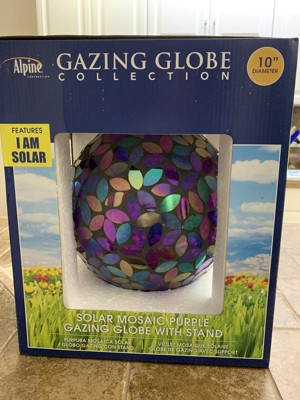 11" Solar Mosaic Iron/Glass Gazing Globe with Stand Purple - Alpine Corporation