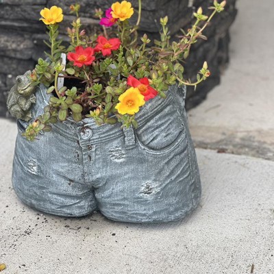 11" Wide Planter Rugged Jeans Flower with Pocket Frog Design - Alpine Corporation: Durable Concrete, No Assembly Required