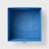 Keep your space organized with this Blue Fabric Bin from Brightroom™. Designed in a rectangular silhouette, this fabric storage bin is perfect for stashing small stationery items, everyday utilities, toys, books and more. It features a wide open-top design for easy access to the contents and a side pull-on tab for easy carrying. Best of all, this storage cube is a solid blue color that adds a sweet pop to your room decor.