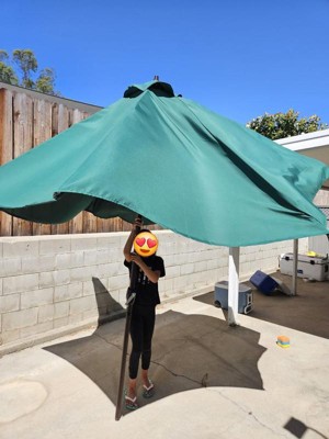 [This review was collected as part of a promotion.] We got this 11 foot umbrella for our newly updated back yard. We have been able to use it multiple times. The color is great! Its really easy to work, our last one I struggled with and would have to have my husband help me. This one is simple and goes up and down easy! My favorite this so far has been using the umbrella over our hot tub in the rain. Its so big it covered it completely. We love it!