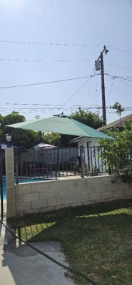 [This review was collected as part of a promotion.] This 11 foot aluminum patio umbrella with crank lift and push button tilt was sent to me complimentary in exchange of an honest review. The umbrella is huge! It opens up pretty easily with the crank. I must say that I don't think the fabric is the best quality because upon opening the umbrella I noticed some strings coming off already but hopefully I am wrong and the fabric will last a long time even with very windy winds. This umbrella definitely needs a big base to hold it down steady so I need to still go get one but it is good for shade.