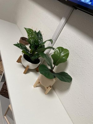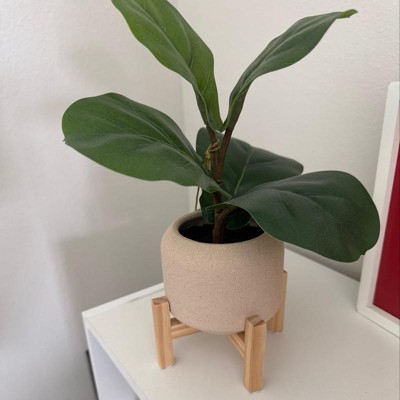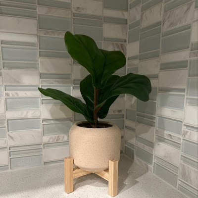 11.5" Faux Fiddle Leaf Plant with Stone Pot and Wooden Stand - Threshold™