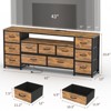 【Long Dresser for 70 Inch TV】 : Designed as a spacious long dresser with a 63-inch rustic brown desktop, this TV stand comfortably fits 55–70 inch screens, creating an immersive viewing setup for bedrooms or entertainment spaces.