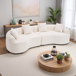 - Luxurious Design Measuring 110", this sofa boasts a curved silhouette upholstered in soft polyester fabric. Its oversized proportions create a stunning statement piece that adds elegance and sophistication to any living room.